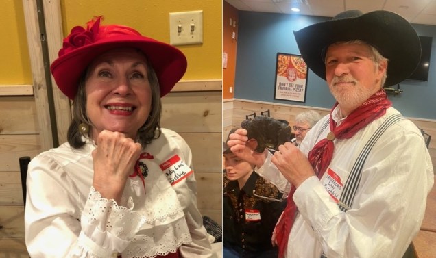Dangerous Dan McGrew and Lady Lou led the group in a boisterous 4 rounds of their “Cowboy Dad Jokes” game. Let’s hope the rowdy boos and yee-haws didn’t disturb the other restaurant patrons. Team Shotgun won the game.