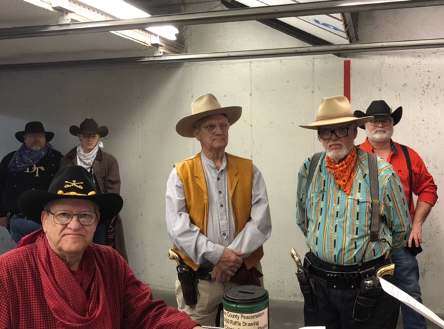 The overnight rain made a muddy mess, so the Peacemakers shot indoors today. Eighteen shooters witnessed Dangerous Dan McGrew smoke everyone in less than 84 seconds for the entire 5 stage match.