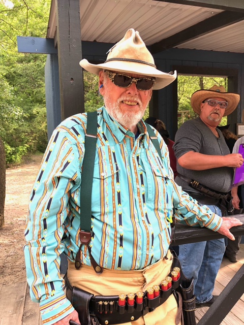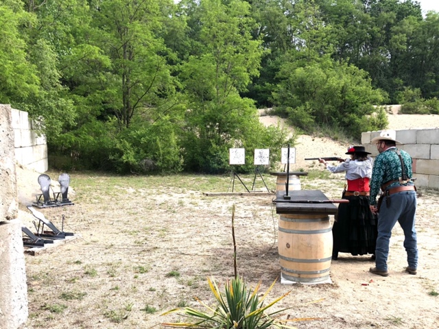 Lady Lou’s rifle failed to extract a piece of brass, which, of course, caused the next round to jamb behind it. It was very sad. She was doing so well. As you know, rounds that don’t go down range, for whatever reason, count as misses. Lefty Lindy loaned her rifle to Lady Lou to finish the first round of stages. Then, before lunch, Jean Duke fixed Lady Lou’s rifle for us from the back of his pickup truck. Great people. It made me smile and say, “Wow”.
